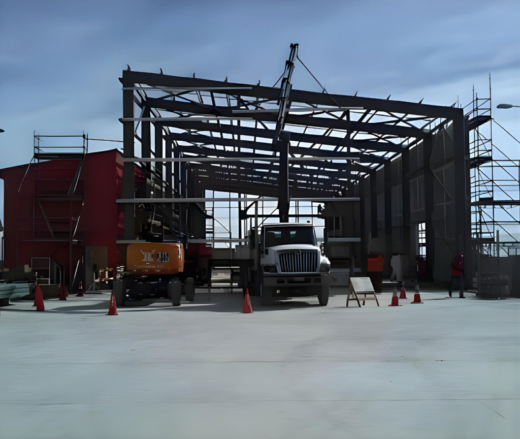 Proyecto integral que abarcó movimientos de tierra, obras civiles, fundaciones, montaje de estructuras, electricidad y revestimiento ignífugo F-120. Entrega llave en mano con implementación para uso.