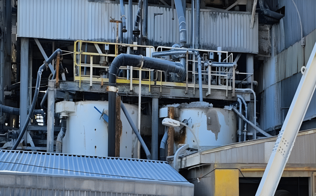 Desmontaje de estructuras metálicas y equipos agitadores mediante oxicorte, junto con obras civiles para la habilitación de piscinas de decantación de filtros.